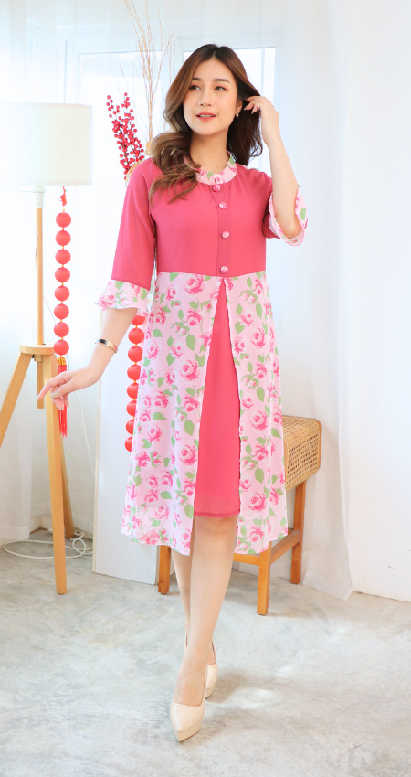 เดรสชีฟอง มีซับใน จีนผ่าหน้า เสื้อคลุมยาว BLUECHERRY SHOP ไซส์ 38 40 42 44 46